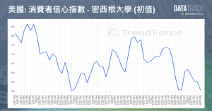 美國密西根大學消費者信心指數 11 月初值降至 50.3,較 10 月的終值 53.6 下滑 6.2%,年減近 30%,接近自 2022 年 6 月以來的最低水平。此結果反映出在聯邦政府關門持續的背景下,消費者對經濟前景的悲觀情緒升溫,整體信心出現近三年來新低。 細項數據與影響因素: 現有經濟狀況指數降至 52.3,月減 10.8%,為 1950 年以來最低,顯示家庭對就業與經濟環境的擔憂加深。 對未來一年經濟前景的預期指數下滑約 11%。 個人財務狀況信心下降 17%。 預期通膨率略升至 4.7%,但長期通膨預期從 3.9% 降至 3.6%。 主因包括政府關門帶來的不確定性、價格持續上漲,以及勞動市場復甦放緩。 唯一例外為持有大量股票的消費者,其信心因股市表現良好而上升 11%。 短期內( 1–2 個月)消費者信心仍將承壓,主要受政府關門、通膨與政策不確定性影響;若政府關門問題獲得解決,信心可望逐步回升。中期展望(半年內)則預計經濟活動將趨穩,但通膨壓力與就業市場表現仍構成風險,須關注貨幣政策與全球經濟變化。 Read More at Datatrack