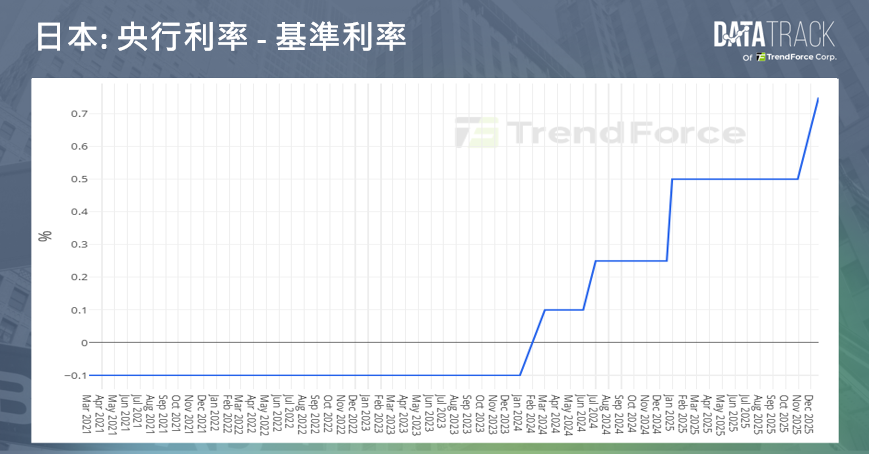 此次升息主因在於通膨壓力延續與薪資成長趨勢穩固。日圓疲弱推升進口成本,年增率自 2025 年初以來累計上漲逾 5%,加重民生負擔。同時,勞動力短缺情況加劇,最大工會預計於 2025 年春鬥提出至少 5% 的加薪方案,延續 2024 年的高檔水準,有助支撐內需消費與經濟動能。此外,美國關稅相關風險趨於緩和,日本銀行總裁植田和男於會後記者會指出,整體經濟動能穩健,未來將依據每次會議數據彈性調整政策,不排除進一步收緊貨幣寬鬆。